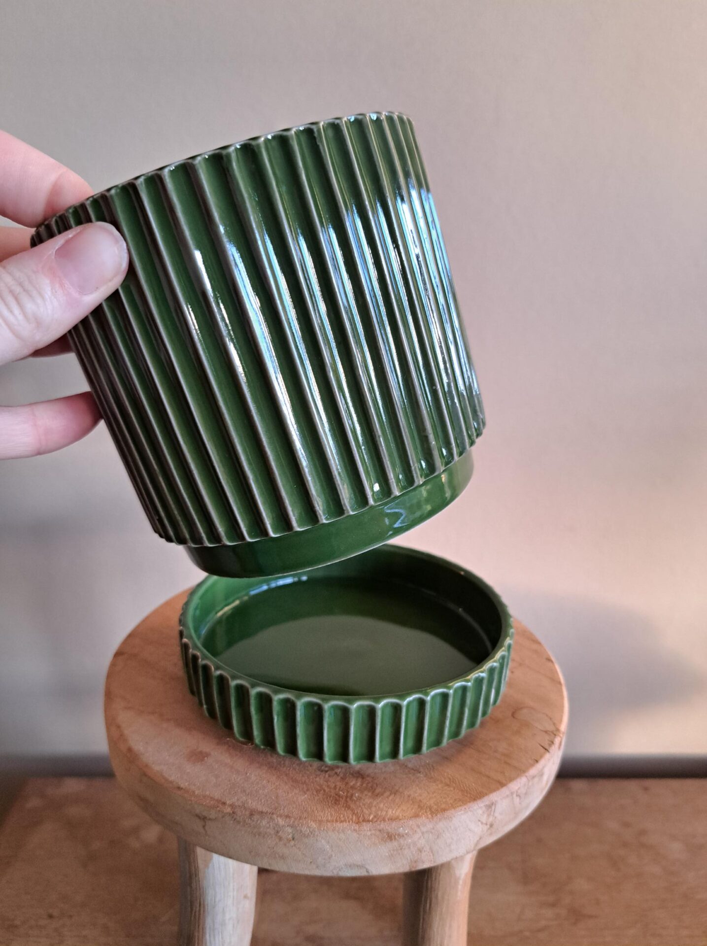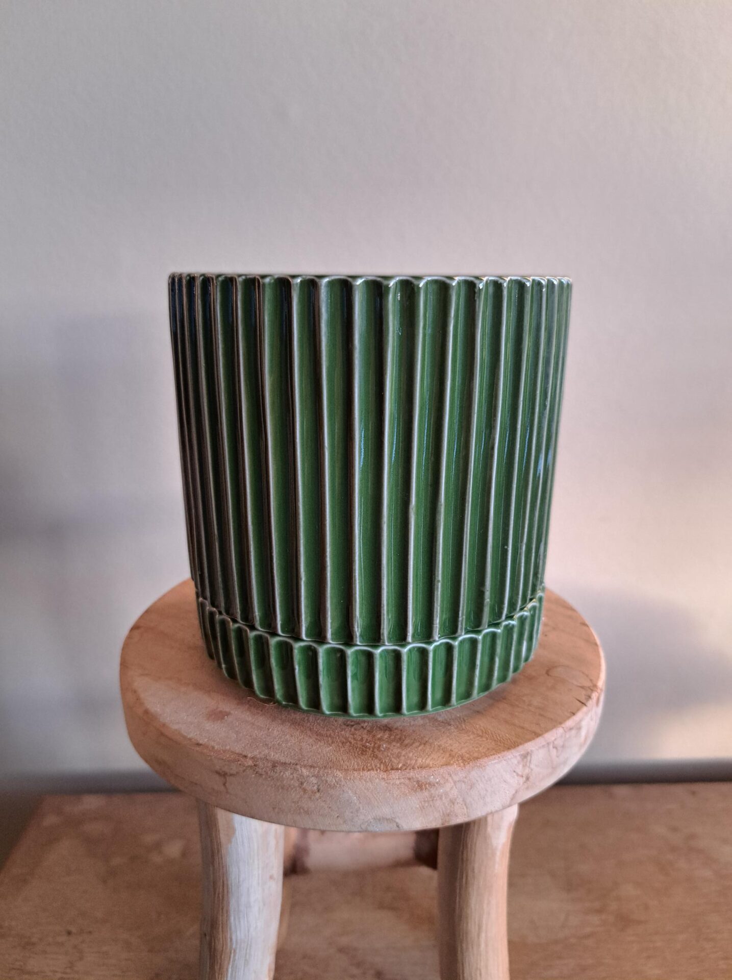 Bloempot ribbel met losse schotel – Donkergroen