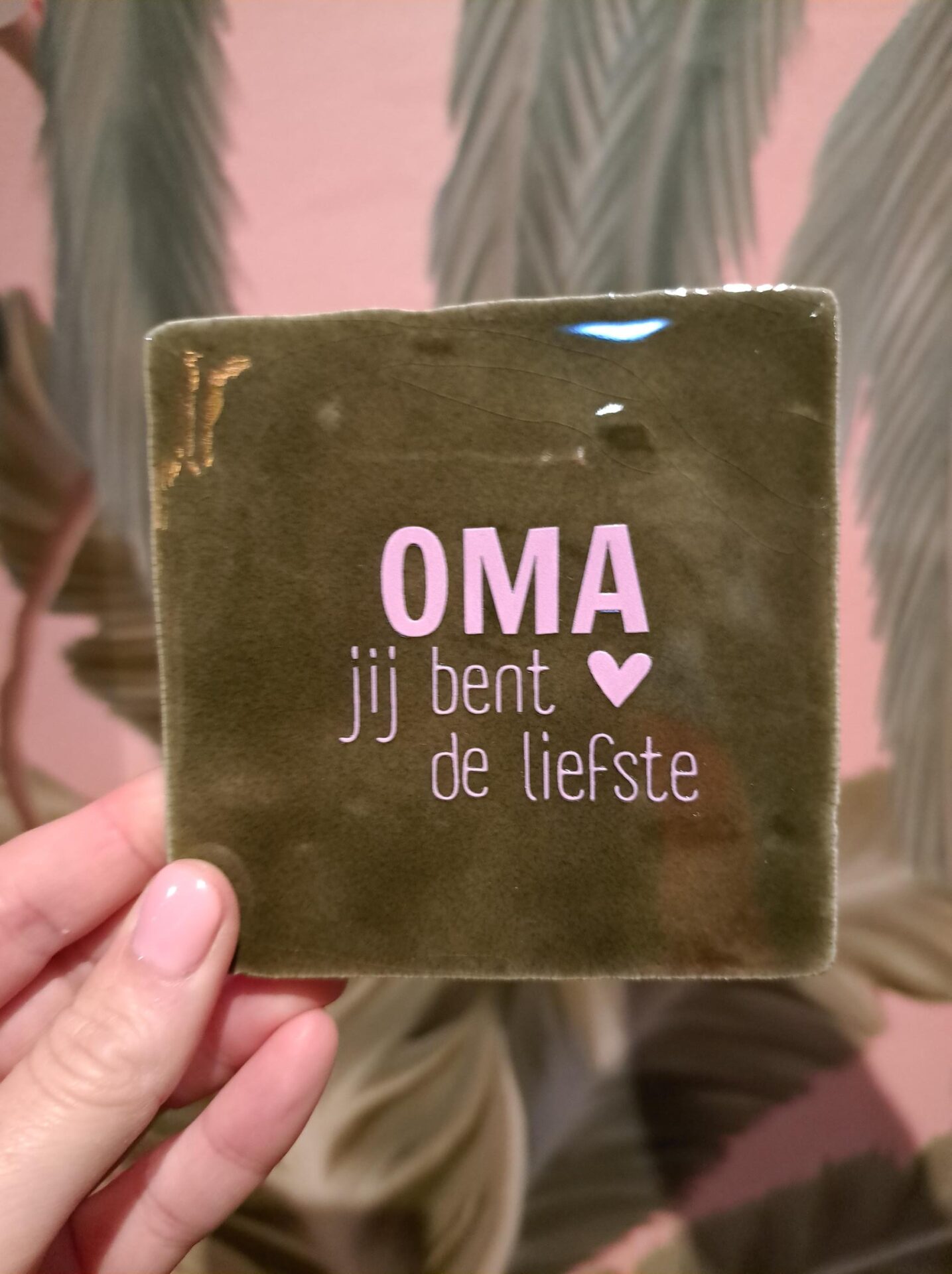 Wees de eerste om “Tegeltje ‘Oma jij bent de liefste’ olijfgroen” te beoordelen